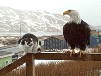 “well, it seems we are at an impasse.” “so we are. carry on, cat” “same to you, bird.”