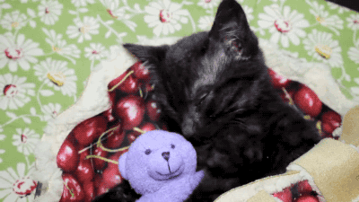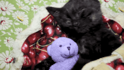 Kitten Sleeps in a Cherry Pie with Her Tiny Teddy Bear. Video