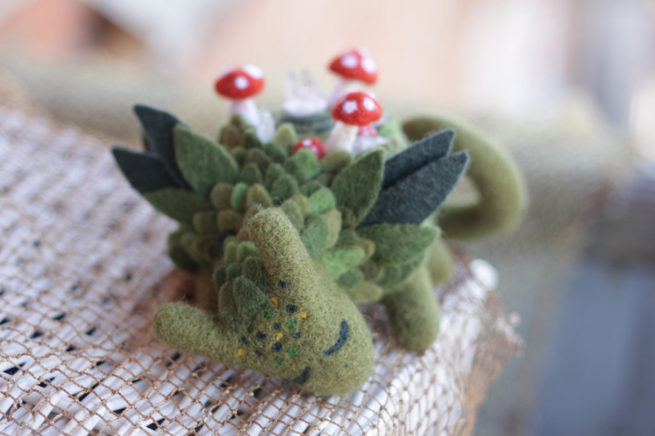 sosuperawesome: Felt dragons by shyshyru on Etsy TINY SLEEPING MUSHROOM DRAGON