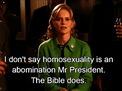 I can never stop posting this. The narrow minded bible fanatics that just look at one small thing in the bible then feed the world with their hate over it. At the same time they ignore all the other silly laws made by man they claimed were made by God. These GIFs say it all.