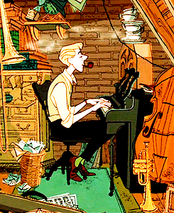 I remember posting somewhere once in a thread about why girls aren’t exploited in animation anymore where some guy said, “all the disney girls are drawn to be generally attractive, but I don’t think there are any eye-candy men… or are there? Are there any Disney men that lots of girls like?” and I mentioned Roger. Tons of girls replied agreeing with me and the original guy was like “wait, Roger? from 101 Dalmatians? What’s attractive about him, he’s tall and lanky and has a big nose, he isn’t muscley at all! Wouldn’t you all prefer Gaston or something? Or do you girls think his big nose is indicative of something else?” and I was like “no, you idiot, he’s a silly, goofy guy who likes animals and can play a bunch of instruments, that’s why he’s attractive. What’s the matter with you? Gaston, seriously?”