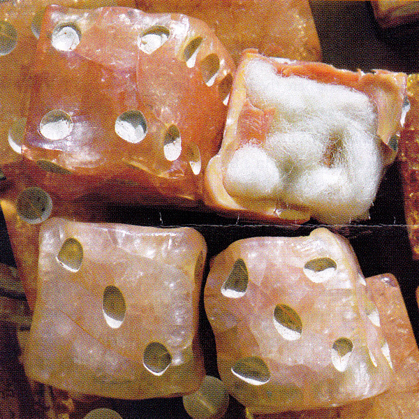 Cellulose nitrate was used to make dice from the late 1860s until the middle of the twentieth century, and the material remains stable for decades. Then, in a flash, they can dramatically decompose. Nitric acid is released in a process called outgassing. The dice cleave, crumble, and then implode.