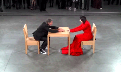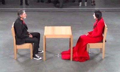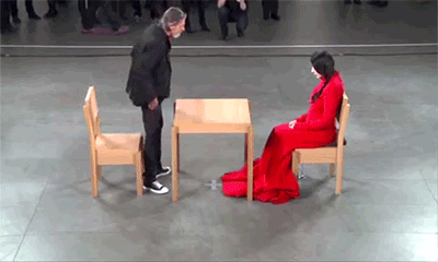 “Marina Abramovic and Ulay started an intense love story in the 70s, performing art out of the van they lived in. When they felt the relationship had run its course, they decided to walk the Great Wall of China, each from one end, meeting for one last big hug in the middle and never seeing each other again. at her 2010 MoMa retrospective Marina performed ‘The Artist Is Present’ as part of the show, a minute of silence with each stranger who sat in front of her. Ulay arrived without her knowing it and this is what happened.”