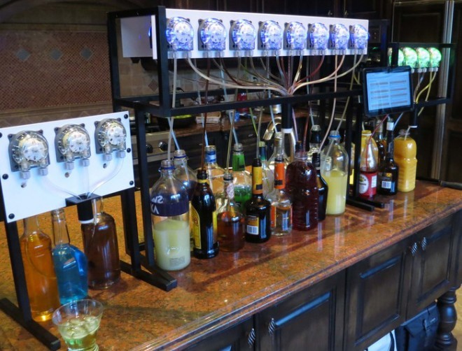 Bartenders beware: A robotic drink-dispensing rig is aiming to steal your customers while pouring cocktail creations at the push of a touchscreen button. Its creators call it Bartendro. Operated through an iPad interface, the open source, synthetic Al Swearengen holds up to 15 bottles of beverage plumbed into custom-designed, Raspberry Pi-controlled pumps. It’s capable of mixing dozens of drinks, including black Russians, Kahlua mudslides, or almost any other classy beverage of your choosing. (via This Open Source Robot Bartender Pours the Perfect Mix | Wired Design | Wired.com)