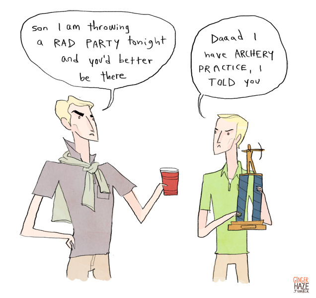 Broship Thranduil/Legolas, man there is NO WAY Legolas likes partying as much as his dad does. There’s just no way.